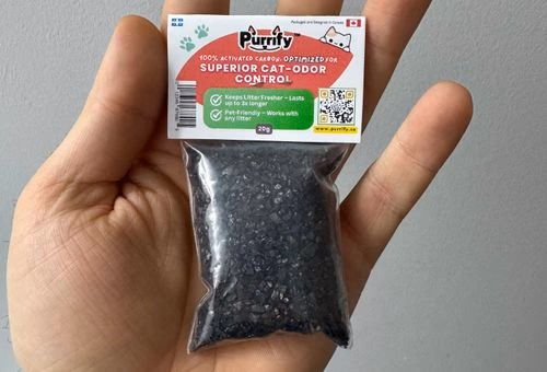 Unlike sprays that mask odors with heavy perfumes, Purrify uses activated carbon to physically trap and neutralize odor-causing molecules at the microscopic level.
